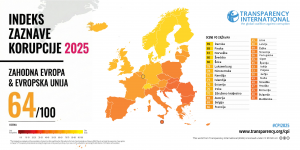 Po podatkih indeksa zaznave korupcije za leto 2025 (CPI), ki ga je danes objavil TI se korupcija v svetu slabša, pri čemer tudi uveljavljene demokracije beležijo naraščujočo raven korupcije zaradi pomankjanja odločnega boja s korupcijo in upada odgovornosti.